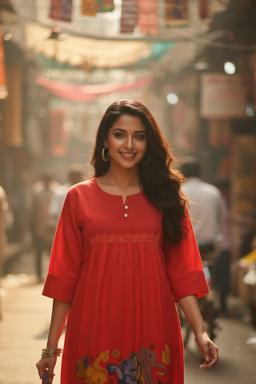 Cotton Dress with Hand-Painted Kalamkari Yoke