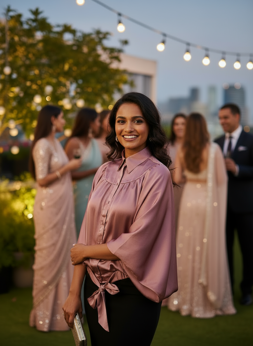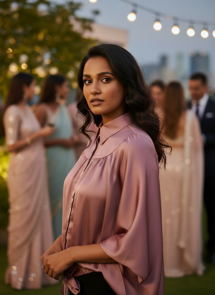Mauve Satin Kaftan-Style with Tie-Up Detail